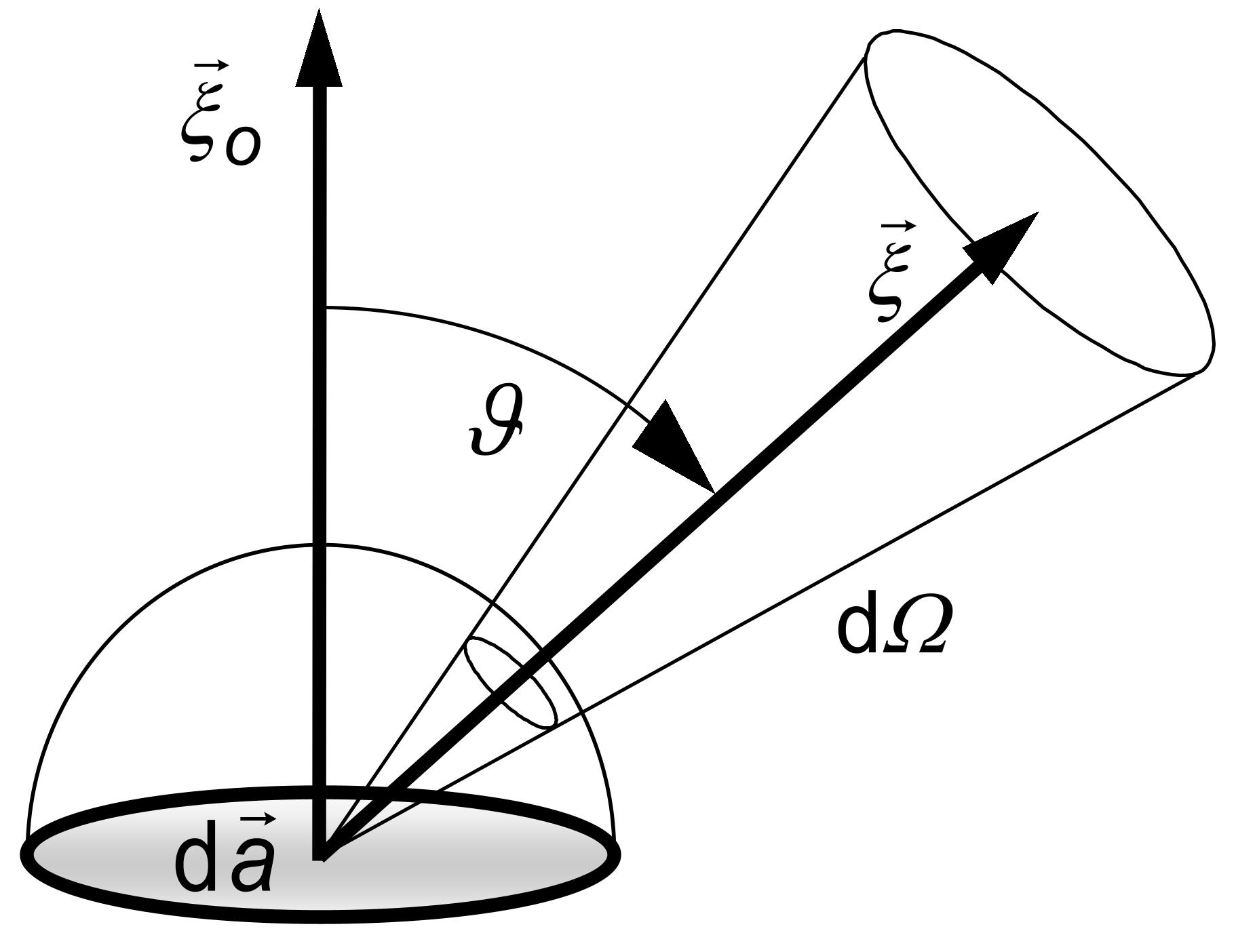 Die Strahldichte kennzeichnet die Strahlungsleistung, die von der Fläche in diesen Raumwinkel ausgestrahlt wird: