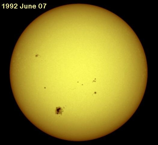 Nun könnte man fragen, ob die Sonne eine eher gute oder eher schlechte Kosinus-Kugelleuchte ist? Mittelt man über die turbulenten Strukturen der leuchtenden Photosphäre hinweg, so ergibt sich das rechts gezeigte Bild, in dem eine deutliche Verdunkelung von der Mitte hin zum Rand beobachtet wird.
